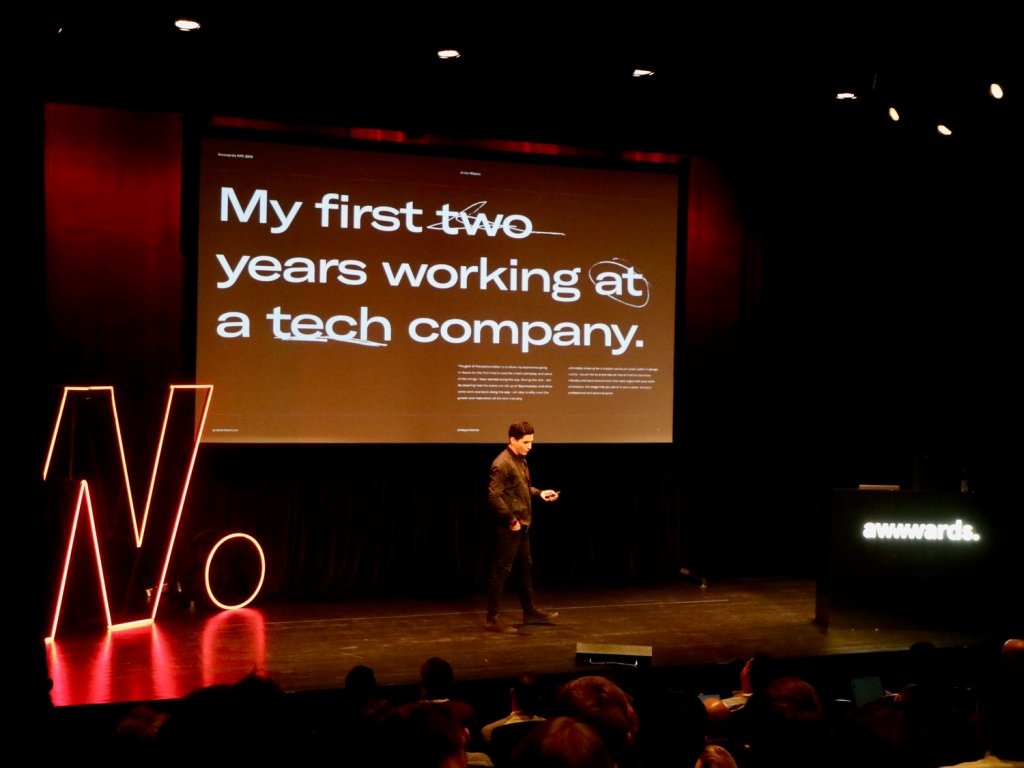 還記得前年分別到了美國西岸跟歐洲走了一回,也是參加了一些設計活動,在那邊接觸到的設計師大多都是大公司裡面的In-House設計師或者是科技新創公司,這次在紐約遇到的設計師大多都是Agency或者是獨立創作者,兩者的感受到的Tone調實在很不一樣。可能剛好也是因為Awwwards主要吸引的參加者,大多為數位創意設計主居多,所以在這次的演講內容裡面,可以感受到很多品牌、創意、設計為主的主題,相較於在西岸講求高科技、方法論、系統設計,在這邊更可以感受到設計師的自由自在的感覺。