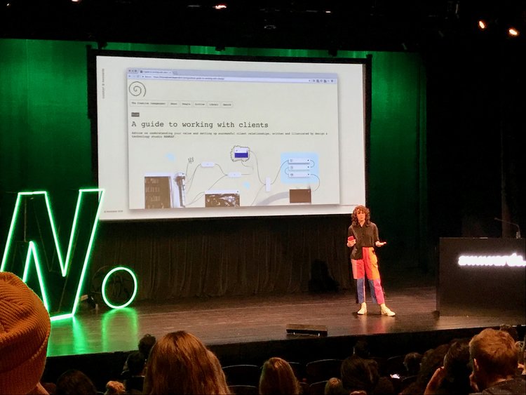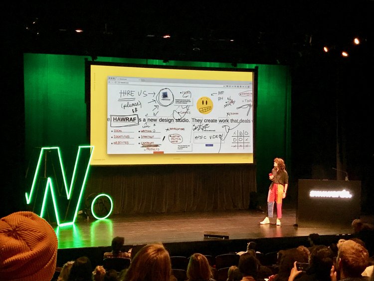 兩天的awwwards演講,最多的背景不乏就是Agency的講者,相較西岸舊金山大多來自大公司的設計師,紐約有非常多非常出眾的Agency。目前在經營 HAWRAF 設計工作室的合夥人 Carly Ayres(她嬉皮的風格穿著跟她們工作的風格一樣奇特😂),她們提供創意服務給不同大小的客戶,有Fortune 500的大企業,也有新創公司,算是在業界十分知名的設計工作室。在演講裡面 Carly 分享了他們製作的一個創意工作者的資源網站「A growing resource of emotional and practical guidance for creative people.」,裡面有提到關於自由工作者的接案技巧、定價策略、客戶溝通等大補帖文,實在是非常實用,連網站都做得很有趣 XD
