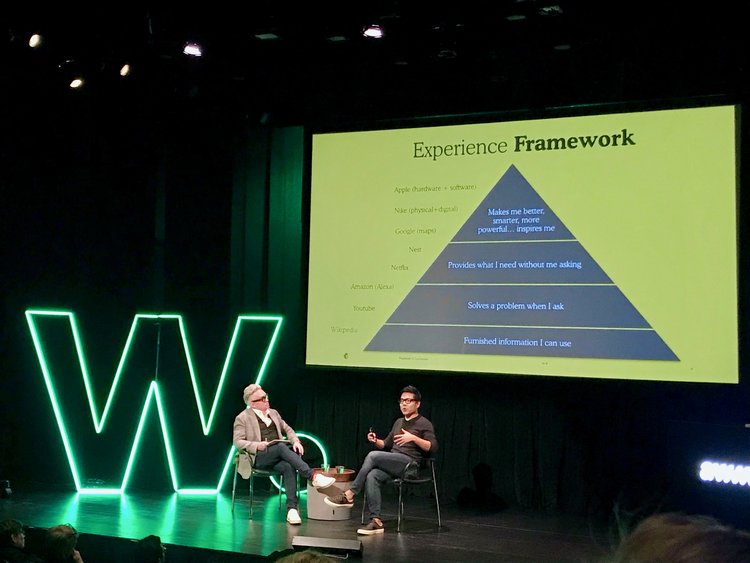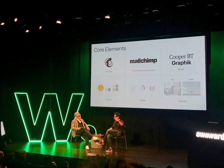 Gene Lee, Mailchimp的新設計總監所帶來的演講,算是這兩天下來很有趣之一的一場了,他邀請了另一位知名的品牌設計師與他坐下來用像Interview般的方式,講了Mailchimp在2018才剛新Launch的品牌識別,他們透過「體驗心法 Experience Mindset」去開始重新設計,什麼是體驗心法呢?可以想像比瞭解客戶更上一層樓的等級,你已經非常瞭解客戶,了解到你設計的出發點就超越他們的需求,提供更多的價值。這就是他們所說的⋯⋯
