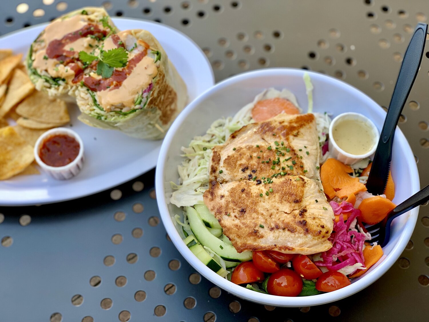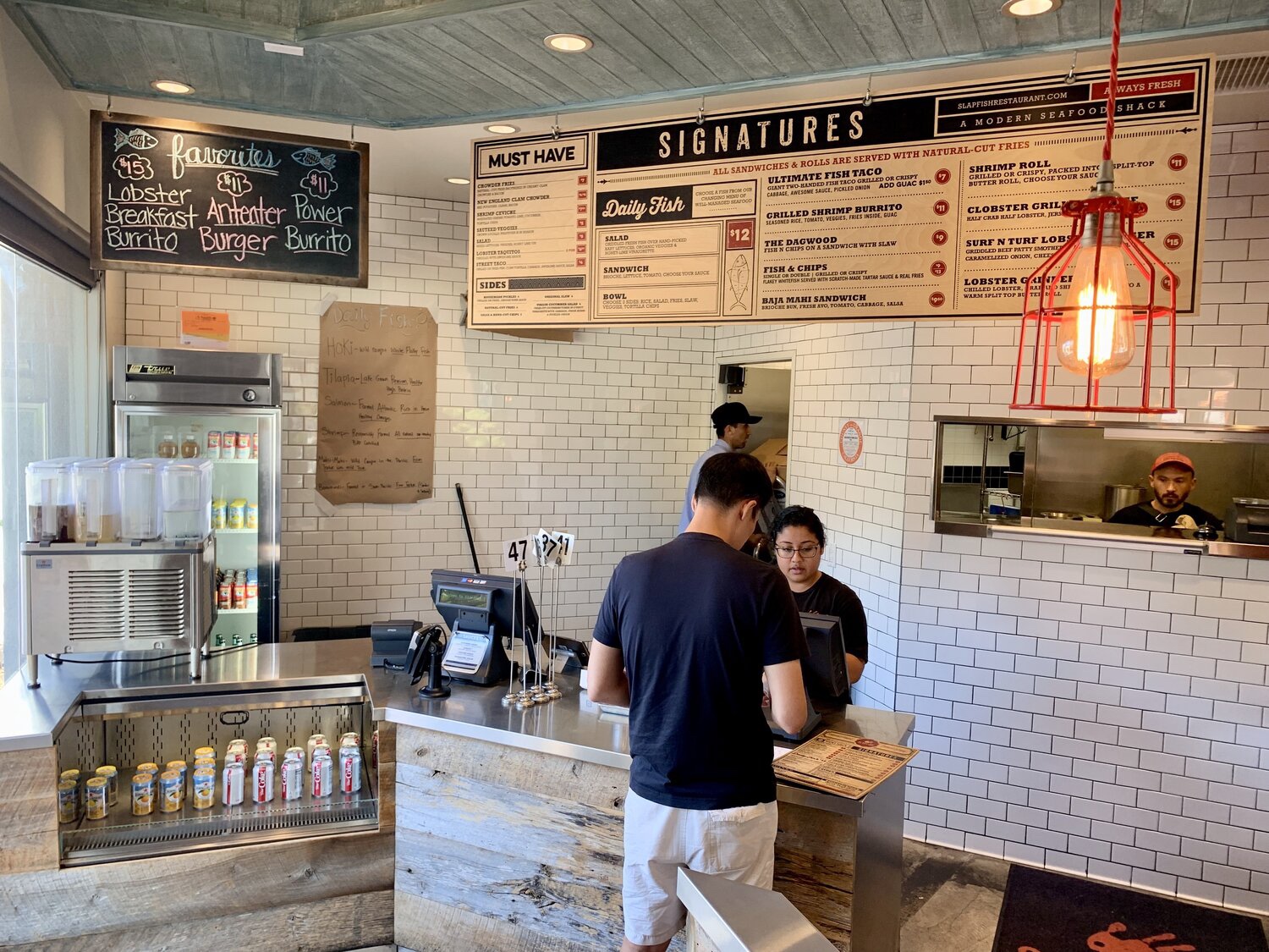 Slapfish 是專門賣魚的快餐店,喜歡海鮮的朋友一定會超愛~店內會標示每天有哪些新鮮的魚可以選擇,我覺得當天點的鮭魚沙拉還有蝦子Burrito整個是超超值,魚很大塊蝦子也超多,整體味道層次很令人懷念,那天吃完後後來還想回味,可惜就又沒吃到了,非常推薦大家品嚐看看 🥰